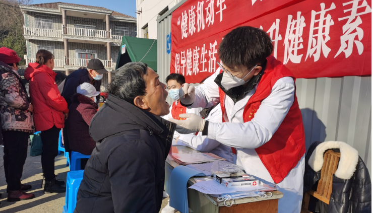 2023年2月27日上午,oa.house365.com_det365娱乐官网登录_game365备用网址繁昌区人民医院“健康机动车”志愿医疗服务队走进峨山镇童坝村,在村卫生室前开展口腔健康检查义诊暨宣教活动。